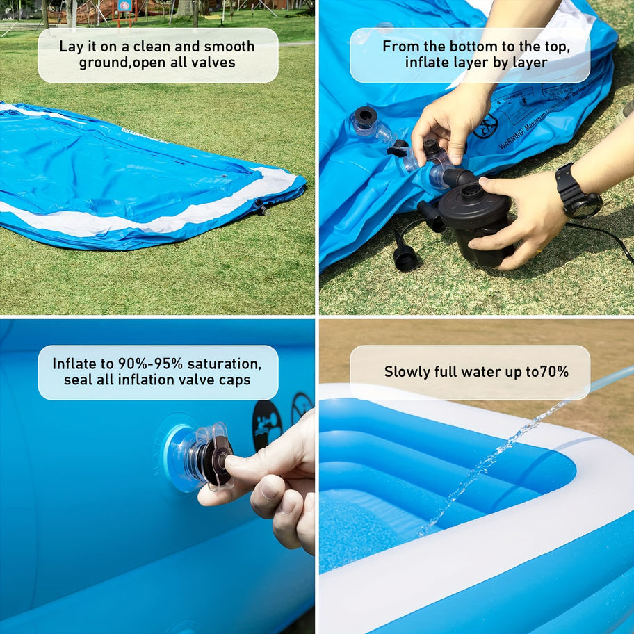 Piscine gonflable YONNST - Bleu et blanc, PVC épaissi à 3 couches, pliable avec